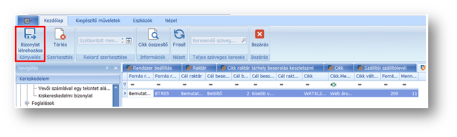 Amennyiben a kapott/módosított adatok megfelelőek, a megjelenő ablakban indíthatjuk a bizonylat létrehozását (tárhelyek közötti vagy raktárközi áttárolás), mellyel megtörténik a készletmozgatás is a programban.