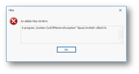 Először meg kell próbálni egy másik munkaállomáson elindítani az exportot. Ha ott sikeresen lefut, akkor célszerű ellenőrizni az érintett felhasználónál hogyan kapcsolódik a hálózathoz: VPN-el távolról, otthonról vagy irodában, WIFI vagy net kábelt használ, illetve ellenőriztetni IT-s kollégával az érintett gép memóriakapacitását. Mivel a fenti üzenet memóriahiányra utal(hat).