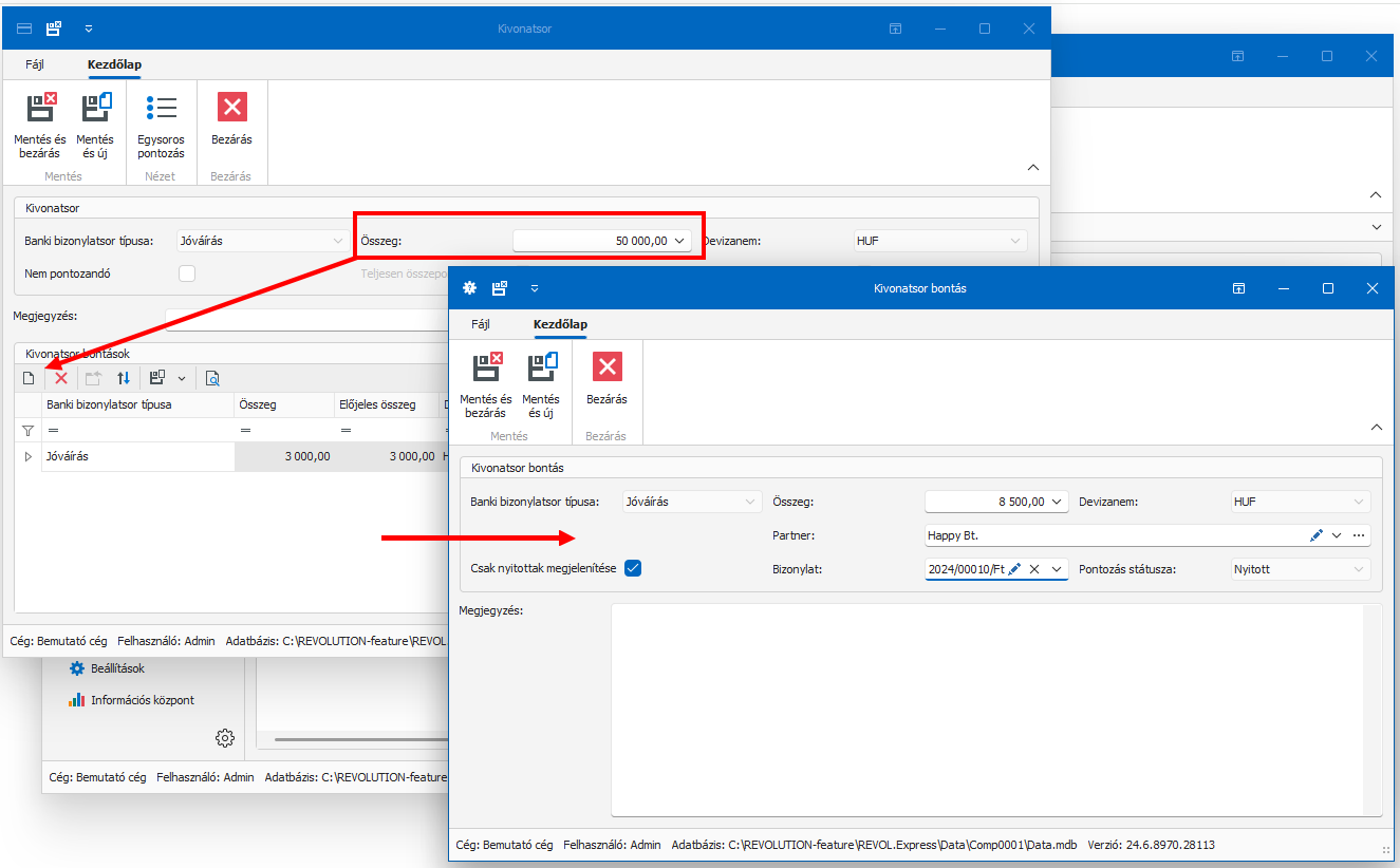 •az így visszanyitott banki kivonatba Új kivonatsort is fel lehet venni, ha szükséges.
