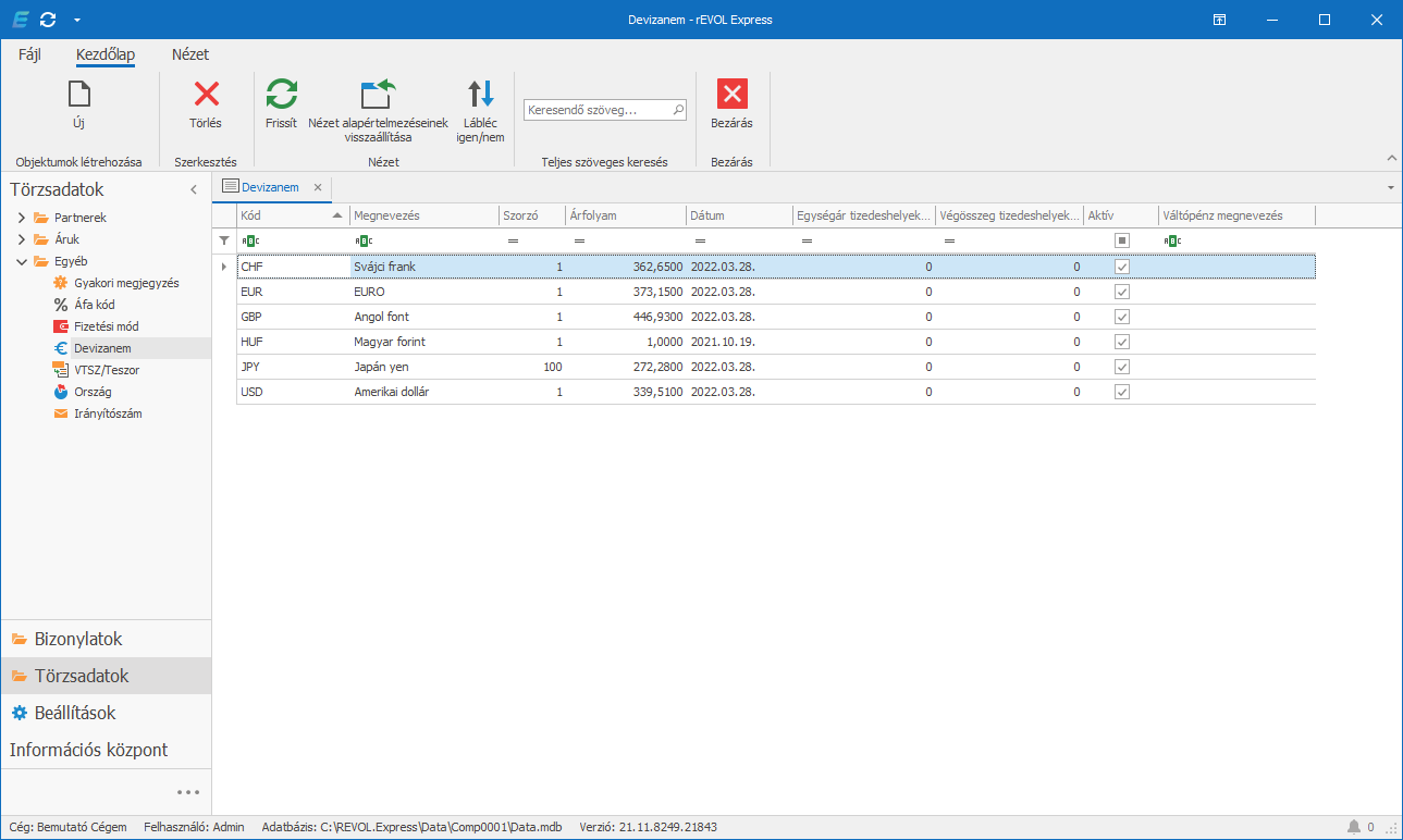 Fontos, hogy bár a devizanemeket rögzíthetjük, devizás vagy export számla kiállításhoz Deviza modul megléte szükséges!