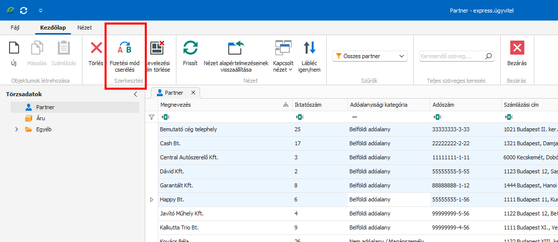 Az express.ügyvitel programban nagyon egyszerűen cserélhetjük le több partner fizetési módját (például készpénzesről átutalásra).
