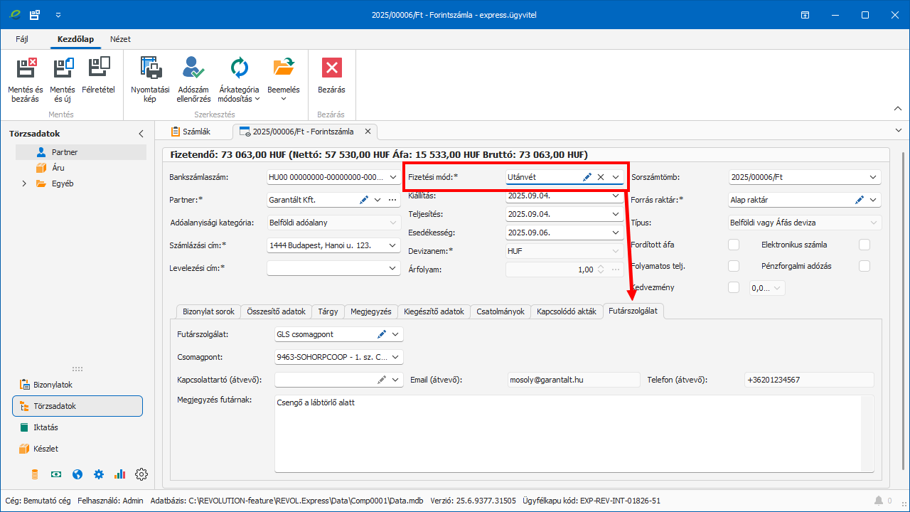 FONTOS: futárszolgálattal csak belföldi, forintos bizonylatokra történő csomagküldés lehetséges, tehát deviza és export bizonylatok kiállításakor, illetve külföldi partner részére nem vehető igénybe!