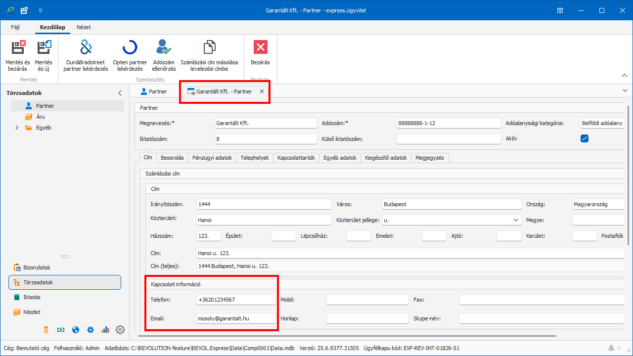 FONTOS: a legtöbb futárszolgálat használatához a Partner adatlapján ki legyen töltve az Email és a Telefon mező, az utóbbit ebben a formátumban töltsük ki: +36201234567 ! Amennyiben továbbiakat szeretnénk megadni, a Partner adatlapján a Kapcsolattartók fülön vehetünk fel újabbakat. Ügyeljünk arra, hogyha csomagpontra történik a kézbesítés, a Telefon mezőkben mobilszámot adjunk meg, országhívó kóddal együtt, ebben a formátumban: +36201234567