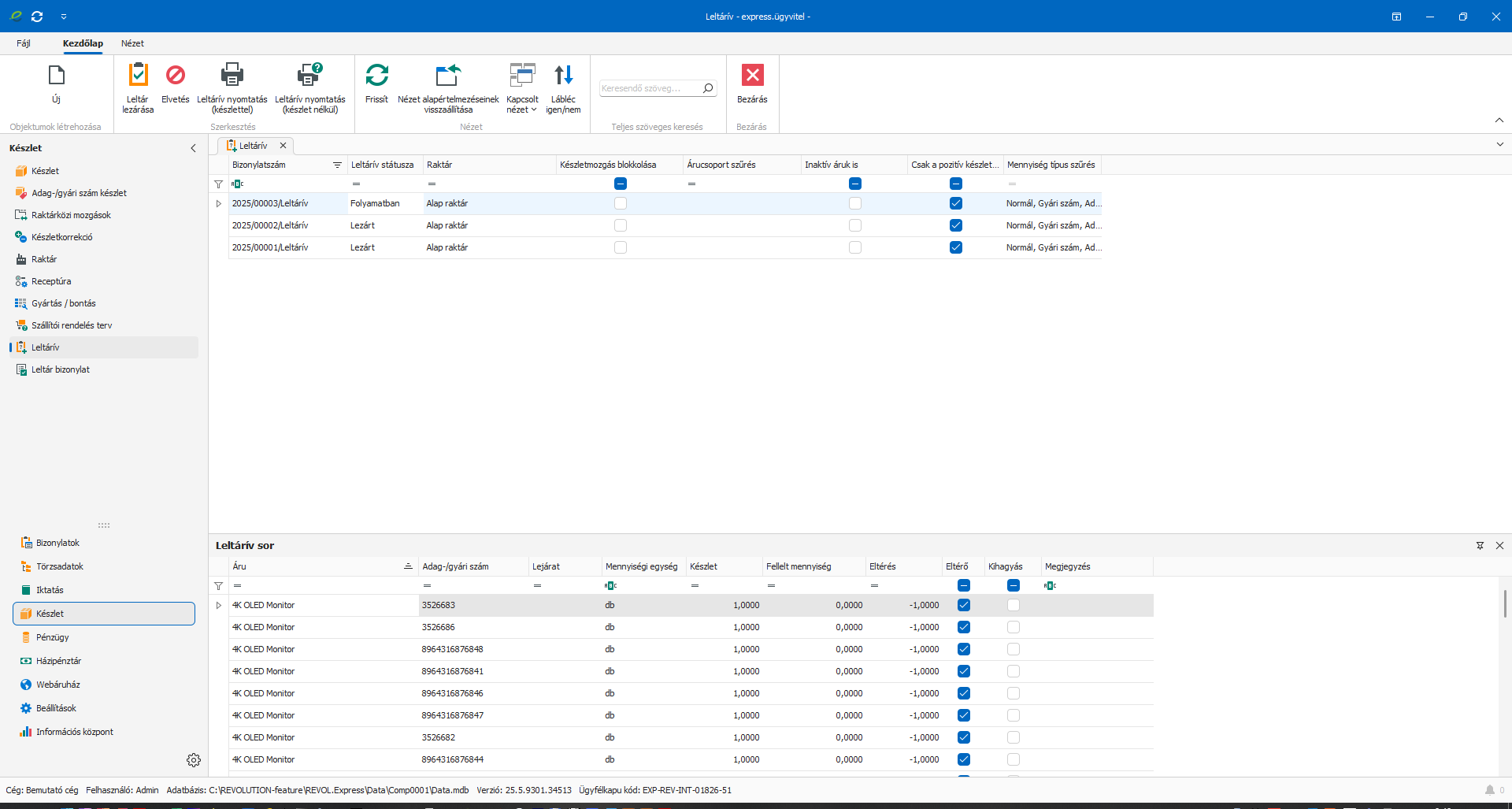 A Leltárívet dupla kattintással módosíthatjuk, ha Nyitott vagy Folyamatban lévő állapotban van. Lezárt státusz esetén csak megtekinteni tudjuk.